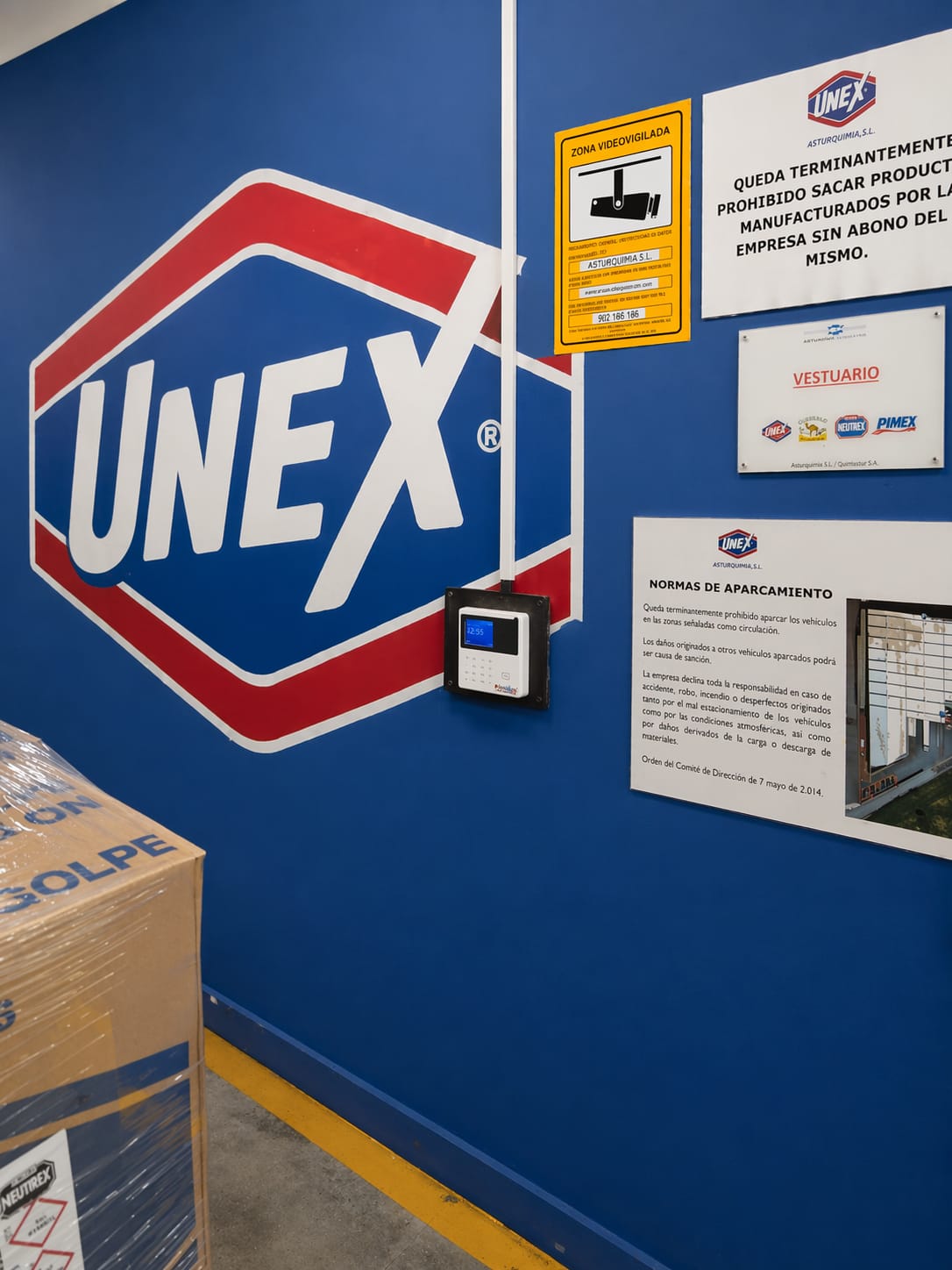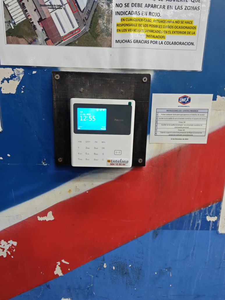 Ayer, 16 de abril de 2026, realizamos la instalación del nuevo sistema de fichaje en la nave de UNEX, situada en Vega de Sariego (Asturias).